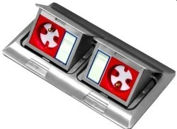 Box podłogowy mini 2x3M ‑ puszka blatowo‑podłogowa podwójna do montażu gniazd standardu 22,5x45 mm (45x45 mm) uchylna