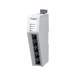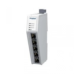 Bramki anybus communicator zapewniają niezawodny, bezpieczny i szybki transfer danych pomiędzy dwiema różnymi sieciami przemysłowymi. Konwertery są łatwe do samodzielnego wdrożenia oraz zapewniają przejrzystą wymianę danych między systemami PLC. Zapewniają możliwość komunikacji z różnymi producentami oraz integrację starszych urządzeń z nowoczesnymi systemami. Wszystko to przy minimalnym wysiłku inżynieryjnym. Bramki Anybus są zbudowane w oparciu o wielokrotnie nagradzany i sprawdzony procesor Anybus NP40, który zapewnia zgodność z siecią, wysoka wydajność i niezawodność. W przypadku integracji i wymiany danych między systemami PLC pracującymi w dwóch różnych sieciach, możliwa jest szybka cyrkulacja danych z transferem do 1500 bajtów w obu kierunkach. Anybus Communicator Common Ethernet - Common Ethernet jest wstępnie skonfigurowana pod wymianę danych dla sieci PROFINET - EtherNet/IP jednak dzięki zmianie firmware może pracować również w następujących konfiguracjach: Modbus-TCP - EtherNet/IP - bramka Anybus ABC4011 Modbus-TCP - PROFINET - bramka Anybus ABC4017 EtherNet/IP - PROFINET - bramka Anybus ABC4013 EtherCAT - EtherNet/IP - bramka Anybus ABC4012 EtherCAT - Modbus-TCP - bramka Anybus ABC4016 EtherCAT – PROFINET - bramka Anybus ABC4020 Przykład zastosowania Doskonała wydajność Czas potrzebny na przesyłanie danych pomiędzy dwoma różnymi systemami PLC składa się z czasu cyklu w pierwszej sieci + czasu cyklu w drugiej sieci. Wewnętrzy transfer danych bramki jest zgodny z naturalną zmiennością czasów cyklu sieci (jitter). Łatwa obsługa Urządzenie posiada dedykowany port komunikacyjny do konfiguracji. Intuicyjny internetowy interfejs pozwala na prostą parametryzację metodą "przeciągnij i upuść" – nie ma potrzeby instalowania dodatkowego oprogramowania. Porty od przodu bramki ułatwiają podłączenie a smukła obudowa pozwala zaoszczędzić miejsce na szynie DIN. Rozbudowane funkcje diagnostyczne w tym monitoring danych ma żywo pozwalają na szybkie rozwiazywanie problemów. Bezpieczeństwo Funkcja bezpiecznego rozruchu umożliwia wykrycie ingerencji w firmware oraz zapewnia odporność na ataki złośliwego oprogramowania. Fizyczny przełącznik bezpieczeństwa blokuje możliwość zmiany konfiguracji oraz zapobiega nieautoryzowanemu dostępowi. Przystosowany do warunków przemysłowych Solidna i kompaktowa obudowa spełnia normy zgodnie z CE i UL. Szeroki zakres temperatur, od -25°C do 70°C oraz montaż na szynie DIN. Interfejs Ethernet Możliwość obsługi różnych systemów sterowania za pomocą jednej bramki dla sieci: EtherNet/IP, EtherCAT, Modbus TCP lub PROFINET Przesyłanie 1 448 bajtów w sieci EtherNet/IP, 1486 bajtów w sieci EtherCAT, 1 500 bajtów w sieci Modbus TCP i 1 024 bajtów w sieci PROFINET do i z bramki Pobierz odpowiedni firmware dla wybranego protokołu ze strony producenta (bezpłatnie) Załaduj oprogramowanie sprzętowe