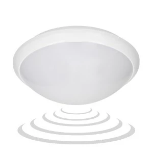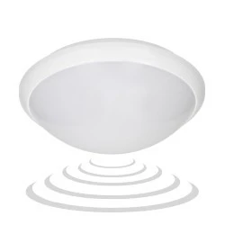 Plafon przeznaczony do automatycznego oświetlania pomieszczeń takich jak klatki schodowe, korytarze, piwnice, garaże, magazyny, pomieszczenia gospodarcze, oświetlenie na zewnątrz budynku itp. Wyposażony jest w mikrofalowy czujnik ruchu, który umieszczony jest wewnątrz i w zależności od ustawień wykryje nawet najmniejszy ruch. Dzięki trzem potencjometrom czujnik może być ustawiony odpowiednio do potrzeb, tak aby działać dokładnie w momencie przebywania i ruchu osób na danym obszarze. Regulacja: czasu świecenia, czułości natężenia światła i zasięgu wykrywania ruchu. Materiał: podstawa poliwęglan (PC), klosz poliwęglan (PC) nietłukący, mleczny. Oprawka E27.