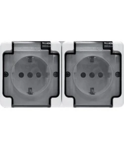 BRYZA Gniazdo hermetyczne podwójne z/u Schuko IP54 z klapką dymną białe 181442