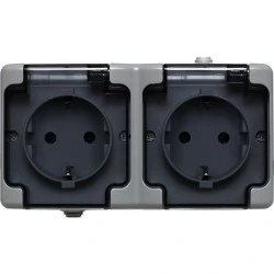 Nazwa: Gniazdo podwójne poziome IP 44, klapka dymna, typu Schuko.