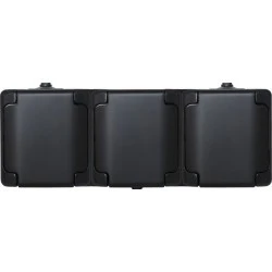 Nazwa: Gniazdo potrójne poziome IP 44, białe, klapka biała, typu Schuko.