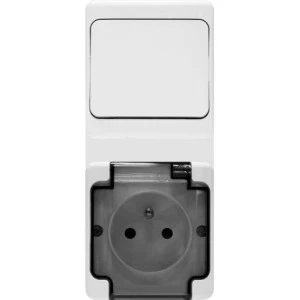 BRYZA Łącznik pojedynczy + gniazdo pojedyncze z/u IP54 z klapką dymną białe 181460 /10szt./