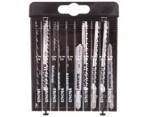 Zestaw brzeszczotów do wyrzynarki GRAPHITE (nr ref. 57H755) zawiera 10 sztuk brzeszczotów przeznaczonych do cięcia różnych materiałów. 8 brzeszczotów do cięcia drewna (zgrubnie dokładnie i po łuku) 1 brzeszczot do metalu 1 brzeszczot uniwersalny do drewna i metalu. Wszystkie brzeszczoty posiadają najpopularniejszy uchwyt typu T pozwalający na mocowanie w większości wyrzynarek dostępnych na rynku.