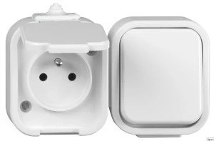 Bursztyn Gniazdo pojedyncze 2p+Z bryzgoszczelne IP44 plus łącznik pojedynczy podświetlany kolor biały GWN‑B/S BI