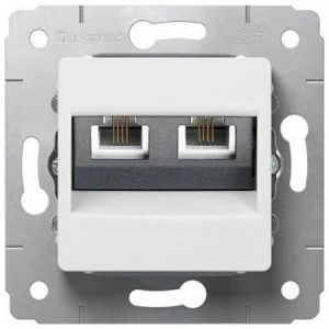 Simon 55 Gniazdo komputerowe podwójne RJ45 kategoria 6, z przesłoną przeciwkurzową (moduł) Biały mat T62.01/111