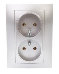 LOGI Gniazdo podwójne 2x2P+Z śrubowe 16A 250V Srebrny 25210