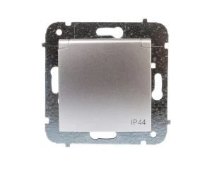 Simon 54 Gniazdo bryzgoszczelne z/u IP44 z klapką transparentną bez uszczelki srebrny mat DGZ1BUZ.01/43A