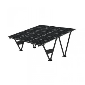 Carport dwustanowiskowy - z piętnastoma modułami Jinko 555, half-cut z srebrną ramą