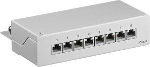 CAT 6 panel krosowy mini/biurkowy, 8 portów ‑ Wersja kolorystyczna Szary