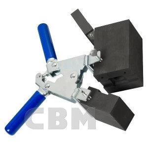 Uchwyt jest wymagany dla zamocowania formy grafitowej używanej podczas procesu zgrzewania egzotermicznego na łączonych elementach. Pozwala na dokładne domknięcie formy i umożliwia otwarcie jeszcze gorącej formy po wykonaniu zgrzewu.