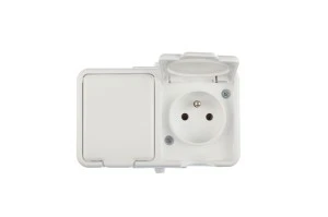 Natynkowe gniazdo podwójne w kolorze białym. Seria Cedar jest osprzętem natynkowym oraz posiada IP44 ( bryzgoszczelność ) Tworzywo jest trwałe i błyszczące a sam produkt posiada atrakcyjną cenę.