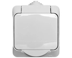 Natynkowe gniazdo pojedyncze w kolorze szarym. Seria Cedar Plus jest osprzętem natynkowym oraz posiada IP44 ( bryzgoszczelność ) Tworzywo jest trwałe i błyszczące a sam produkt posiada atrakcyjną cenę.