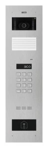 Centrala Master, do instalacji cyfrowych do 1020 lokali, obsługa do 6144 breloków zbliżeniowych oraz modułem kamery kolorowej i małym podświetlanym spisem lokatorów na górze, stal nierdzewna stal nierdzewna