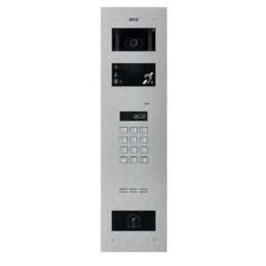 Panel cyfrowy Inspiro slave z zamkiem szyfrowym zgodnym z alfabetem Braille'a, kamerą kolorową, dodatkową sygnalizacją optyczną, pętlą indukcyjną T dla osób niedosłyszących, komuniukatami głosowymi, czytnikiem zbliżeniowym, stal nierdzewna