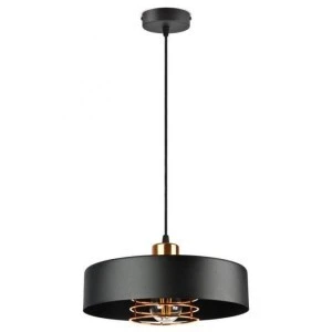 CHIRO to lampa wisząca przystosowana na 1 żarówkę z gwintem E27 o maksymalnej mocy świecenia 60W (brak w zestawie). Zastosowanie wymiennego źródła światła pozwala każdemu użytkownikowi na indywidualny dobór rodzaju żarówki i na dostosowanie jej kształtu oraz barwy światła do własnych preferencji. Lampa utrzymana jest w stylu loftowym i doskonale wkomponuje się w pomieszczenia surowe i minimalistyczne, w których dominują cegła, beton i metal. CHIRO to prawdziwa ozdoba sufitu o kształcie przyciągającym wzrok. Klosz ma formę cylindryczną, a żarówka otoczona jest dekoracyjnym elementem w kolorze miedzi, który dodatkowo zabezpiecza zamontowane źródło światła. Elementy lampy wykonane są z metalu malowanego proszkowo na kolor czarny. Produkt nadaje się do montażu sufitowego, natynkowego. Długość całkowita lampy wynosi 70 cm.