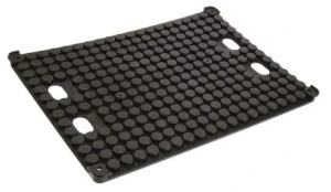 Obsługa zgodności programów sterowania ESD S20.20 i EN 61340-5-1. Przewodzący uchwyt PCB. Przewodzący uchwyt płytki drukowanej, unikalna konstrukcja wykorzystuje podnoszone kołki do zabezpieczenia płytki drukowanej Może być umieszczony na uziemionej powierzchni Komplet z wycięciami ułatwiającymi przenoszenie