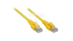 VOL6UDLL5Y to patchcord RJ45/RJ45 o długości 5 metrów, wykonany z materiału LSZH (Low Smoke Zero Halogen), co oznacza, że jest to materiał o niskim dymieniu i braku halogenów. Kolor żółty patchcordu ułatwia identyfikację i organizację kabli w sieci.