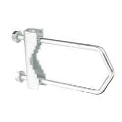 Długi cybant stalowy z ząbkowanym łącznikiem umożliwia montowanie anten satelitarnych lub naziemnych na masztach. Zacisk został wykonany z ocynkowanej stali, dzięki temu jest odporny na korozję i inne uszkodzenia.