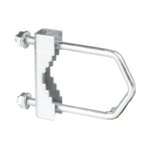 Stalowy cybant z ząbkowanym łącznikiem umożliwiający montowanie na masztach anten satelitarnych lub naziemnych. Zacisk został wykonany z ocynkowanej stali, dzięki temu jest odporny na korozję i inne uszkodzenia.