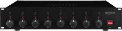Cyfrowy wzmacniacz mocy, 8-kanałowy · Cicha praca dzięki chłodzeniu bez wentylatora · Możliwość pracy w mostku 8Ω · Funkcja wyciszania dla każdego kanału · 8 regulatorów głośności · Diodowy wskaźnik przesterowania (clip) dla każdego kanału · Ochrona przed zwarciem Moc szczytowa (peak) 600 W Moc znamionowa RMS 400 W Moc znamionowa RMS przy 4Ω 8 x 50 W Moc znamionowa RMS przy 8Ω 8 x 30 W Moc znamionowa RMS w mostku 8Ω 4 x 100 W Kanały wejściowe 8 Wejścia 1V/20kΩ niesym. 550mV/20kΩ sym. Pasmo przenoszenia 10-20 000 Hz Tłumienie przesłuchu > 45 dB Zasilanie 230V˜/50Hz/600VA Napięcie zasilające ~ 230 V Zasilanie sieciowe 50 Hz Pobór mocy w trybie pracy 600 VA Dopuszcz. temp. otoczenia 0-40 °C Szerokość 483 mm Wysokość 90 mm Głębokość 330 mm Wysokość (U) 2 Waga 10.5 kg Złącza 8 x XLR, sym. 8 x RCA, 8 x para terminali śrubowych Wymiary opakowania (S x W x D) 0.41 x 0.16 x 0.56 m Waga brutto 13.22 kg Waga netto 10.68 kg