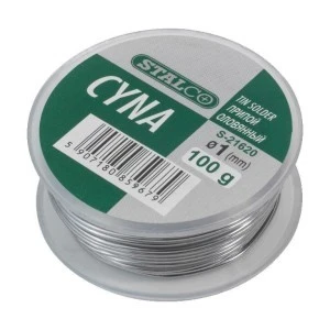 Cyna lutownicza jest niezbędna przy łączeniu przewodów w branży elektrycznej i elektronicznej. Stanowi spoiwo łączonych elementów. Dzięki niskiej temperaturze topnienia można podgrzać ją za pomocą końcówki lutownicy i zalać kable. W ten sposób powstanie stabilne połączenie, które będzie przewodziło prąd elektryczny. Cyna lutownicza STALCO jest oferowana w niewielkim poręcznym opakowaniu. Znajduje się w nim drut o średnicy 1 milimetra. Opakowanie ułatwia wyciąganie materiału i podawanie go w miejsce pracy. Pudełko z łatwością można schować do szuflady stołu warsztatowego lub skrzyni narzędziowej.