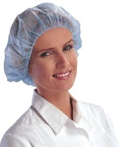 Czepek okrągły. Włóknina polipropylenowa, 14 g/m2. Brzeg obszyty gumką. Średnica 53 cm. Opakowanie zbiorcze 100 szt, kolor niebieski rozmiar Uniwersalny