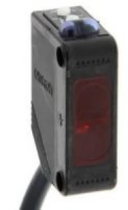Czujnik fotoelektryczny, obudowa prostokątna, czerwona dioda LED, odbiciowy, 100 mm, NPN, Light-ON / Dark-ON, kabel 2 m.