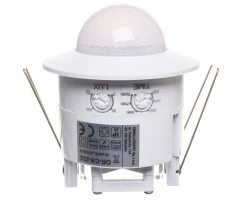 Czujnik ruchu może być montowany w podwieszanych sufitach, a jego średnica otworu do mocowania wynosi 61,5 mm. Dobrze sprawdza się jako detektor ruchu w dużych pomieszczeniach np. halach magazynowych, poczekalniach. Jego kat widzenia wynosi 360, natomiast zasięg wykrywania ruchu - od 3 do 12 m. Produkt może pracować z maksymalnym obciążeniem 1200 W przy zasilaniu 230 V oraz częstotliwości 50 Hz. Natężenie światła czujnika również ulega regulacji i może wynosić od 3 do 2000 Iux. Czujnik ruchu został wykonany zgodnie z zaleceniami międzynarodowych norm jakościowych. Ze względu na stopień ochrony IP20, powinien być montowany w pomieszczeniach suchych oraz niezapylonych.