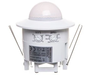 Czujnik ruchu OR-CR-222 pochodzi z oferty katalogowej marki Orno. Należy do profesjonalnych aparatów, stosowanych w celu sterowania oświetleniem lub innymi urządzeniami elektrycznymi. Kontrolę całego obszaru zapewnia potrójny system czujników, współpracujących z detektorami umieszczonymi pod specjalnym kątem. Urządzenie zostało wykonane z białego tworzywa sztucznego, które cechuje się wysoką trwałością. Przystosowano go do współpracy z oświetleniem LED-owym.