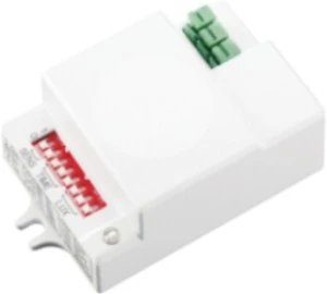CZUJNIK RUCHU HF. Mikrofalowy czujnik ruchu działający na zasadzie radaru i wykrywania poruszających się obiektów. Umożliwia automatyczne włączenie oświetlenia w chwili wykrycia ruchu. Posiada możliwości zmiany ustawień za pomocą mikroprzełączników DIP: czasu świecenia (TIME), czułości w zależności od ilości światła w otoczeniu - czułość zmierzchowa (LUX), zasięgu działania (SENS). Współpracuje z oświetleniem klasycznym (żarówkowym) oraz LED.