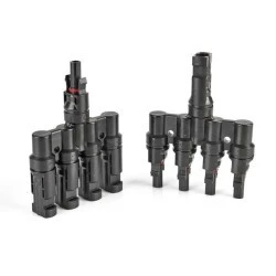 Zestaw tzw. męski i żeński (+) i (-) złączy MC4 umożliwia profesjonalne łączenie paneli fotowoltaicznych.