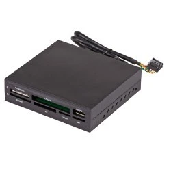 Wewnętrzny czytnik kart pamięci Akyga® AK-CA-37, stanowiący przydatny element doposażenia obudowy PC. Przeznaczony do montażu w zewnętrznej zatoce 3.5”, może zastąpić np. nieużywaną stację dyskietek. Czytnik obsługuje szeroki zakres kart pamięci, a dodatkowo posiada port USB 2.0 do przesyłania danych, podłączania urządzeń peryferyjnych bądź ich ładowania.