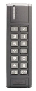PRT12LTG to wysokiej jakości czytnik przeznaczony do pełnienia funkcji jako terminal zbliżeniowy podłączony do nadrzędnego kontrolera dostępu. Czytnik zbliżeniowy zewnętrzny charakteryzujący się ciemnoszarą obudową i klawiaturą. Współpracuje z kartami zbliżeniowymi standardu EM 125 kHz. Czytnik zbliżeniowy posiada silikonową klawiaturę grawerowaną laserowo z podświetleniem z dodatkowymi dwoma klawiszami funkcyjnymi (np. dzwonek, lampka). Urządzenie może być sformatowane do wielu popularnych formatow transmisji. Takie rozwiązanie sprawia, że terminal może współpracować z większością dostępnych na rynku kontrolerów dostępu.