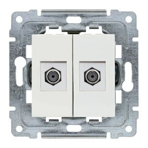 Nazwa: Gniazdo - złącze TV podwójne żeńskie typ F, bez ramki