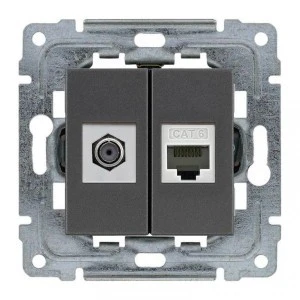 DANTE Gniazdo TV typu F + RJ45 kat. 5e grafit 456070