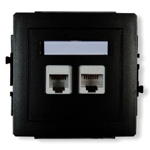 DECO Gniazda telefoniczne pojedyncze 1xRJ11 + komputerowego pojedynczego 1xRJ45, kat. 5e, 8‑stykowy, beznarzędziowe czarny mat 1