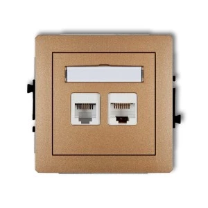 DECO Gniazda telefoniczne pojedyncze 1xRJ11 + komputerowego pojedynczego 1xRJ45, kat. 5e, 8‑stykowy, beznarzędziowe złoty metali