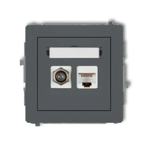 DECO Gniazdo antenowe poj. typu F (SAT) + gniazda komp. poj. 1xRJ45 kat. 5e 8‑stykowy grafitowy mat 28DGFK‑1
