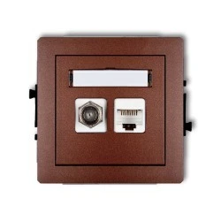 DECO Gniazdo antenowe pojedyncze typu F (SAT) + gniazda komputerowe pojedyncze 1xRJ45 kat. 5e 8‑stykowy brązowy metalik 9DGFK‑1