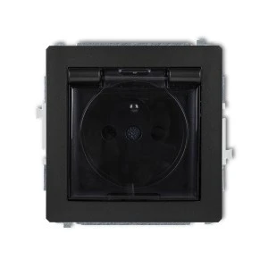 DECO Gniazdo bryzgoszczelne z/u (klapka dymna) czarny mat 12DGPB‑1zdp