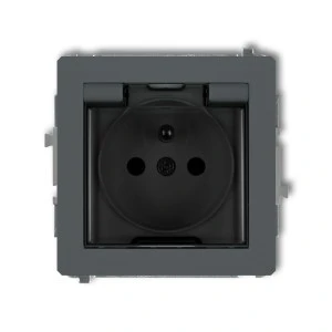 DECO Gniazdo bryzgoszczelne z/u (klapka dymna) grafitowy mat 28DGPB‑1zdp