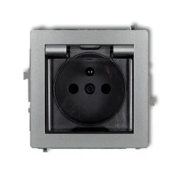 DECO Gniazdo bryzgoszczelne z/u (klapka dymna) srebrny metalik 7DGPB‑1zdp