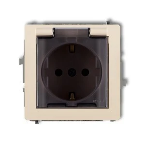 DECO Gniazdo bryzgoszczelne z/u SCHUKO (klapka dymna) beżowy 1DGPB‑1sdp