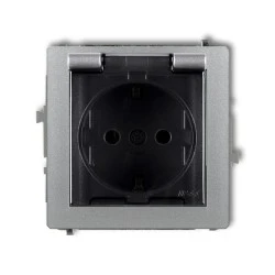 DECO Gniazdo bryzgoszczelne z/u SCHUKO (klapka dymna) srebrny metalik 7DGPB‑1sdp