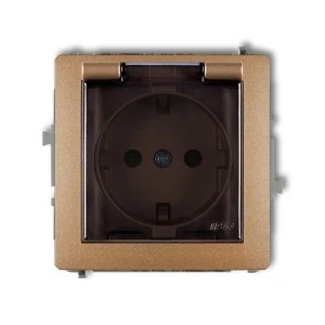 DECO Gniazdo bryzgoszczelne z/u SCHUKO (klapka dymna) złoty metalik 8DGPB‑1sdp