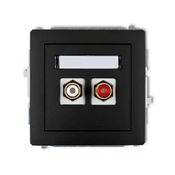 DECO Gniazdo podwójne RCA (typu cinch ‑ biały i czerwony, pozłacany) czarny mat 12DGRCA‑2