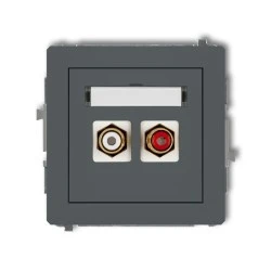 DECO Gniazdo podwójne RCA (typu cinch ‑ biały i czerwony, pozłacany) grafitowy mat 28DGRCA‑2