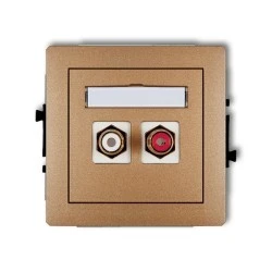 DECO Gniazdo podwójne RCA (typu cinch ‑ biały i czerwony, pozłacany) złoty metalik 8DGRCA‑2