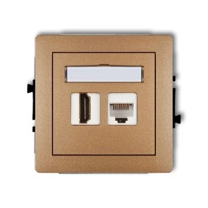 DECO Gniazdo pojedyncze HDMI + Gniazdo komputerowe pojedyncze 1xRJ45, kat. 5e, 8‑stykowy złoty metalik 8DGHK